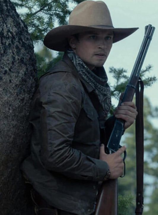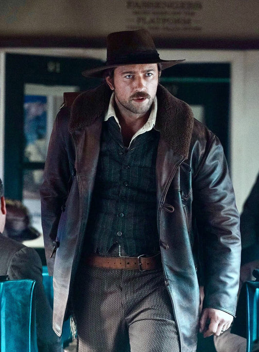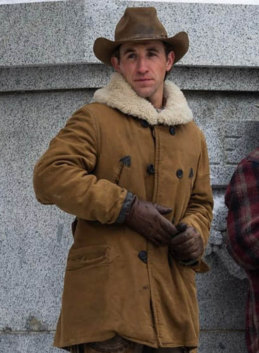 1923 S02 Brandon Sklenar Spencer Dutton Brown Shearling Leather Coat